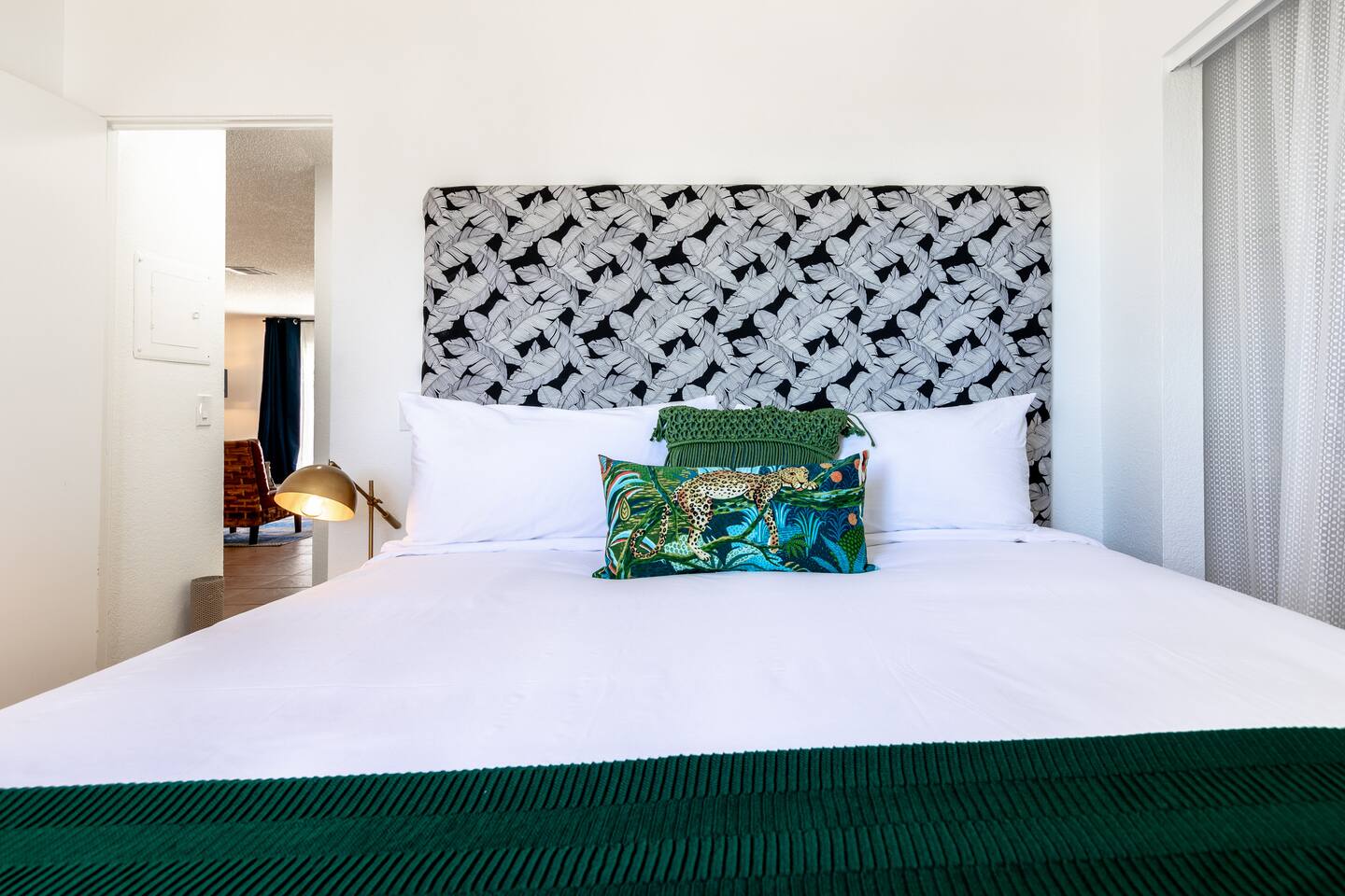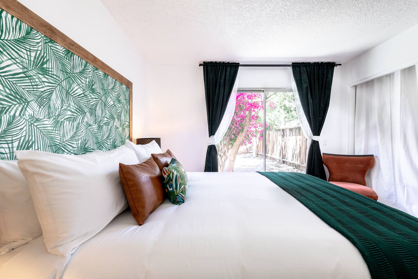 City of Desert Hot Springs Vacation Rental Permit Number VR20-0069 Tropical bungalow in the desert. Just minutes to Palm Springs and near Joshua Tree. Two-bedroom, Two-bathroom apartment with private backyard. Our two bedroom apartments sleeps 5 people comfortably, but due to high demand on festival weekends we are allowing up to 6 registered guests with additional fee. We encourage you to bring air mattress and extra blankets and pillows as needed.