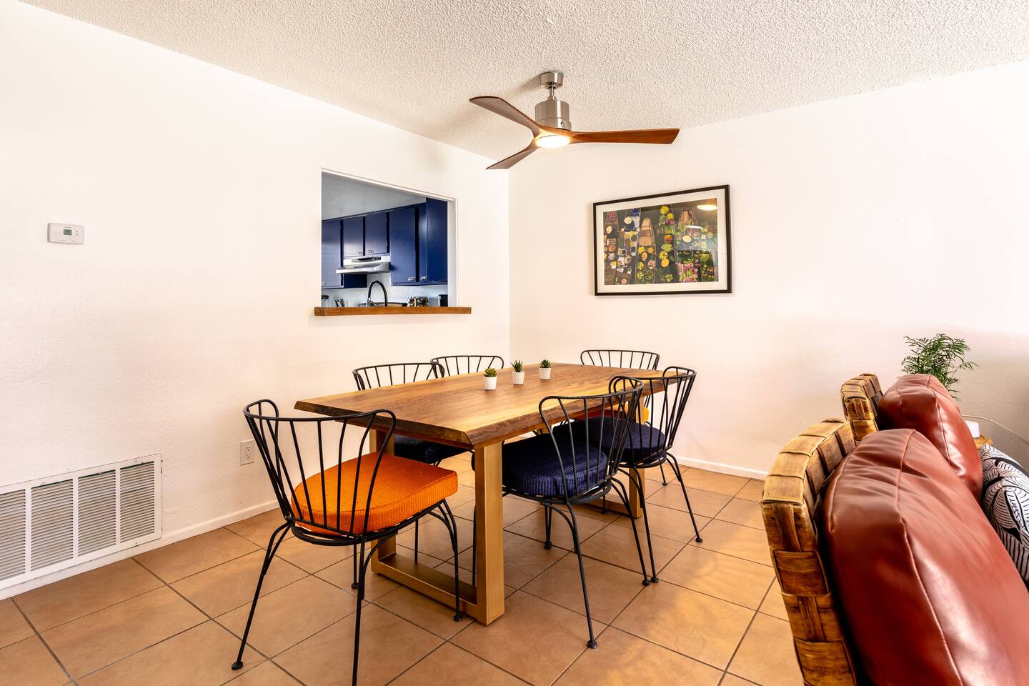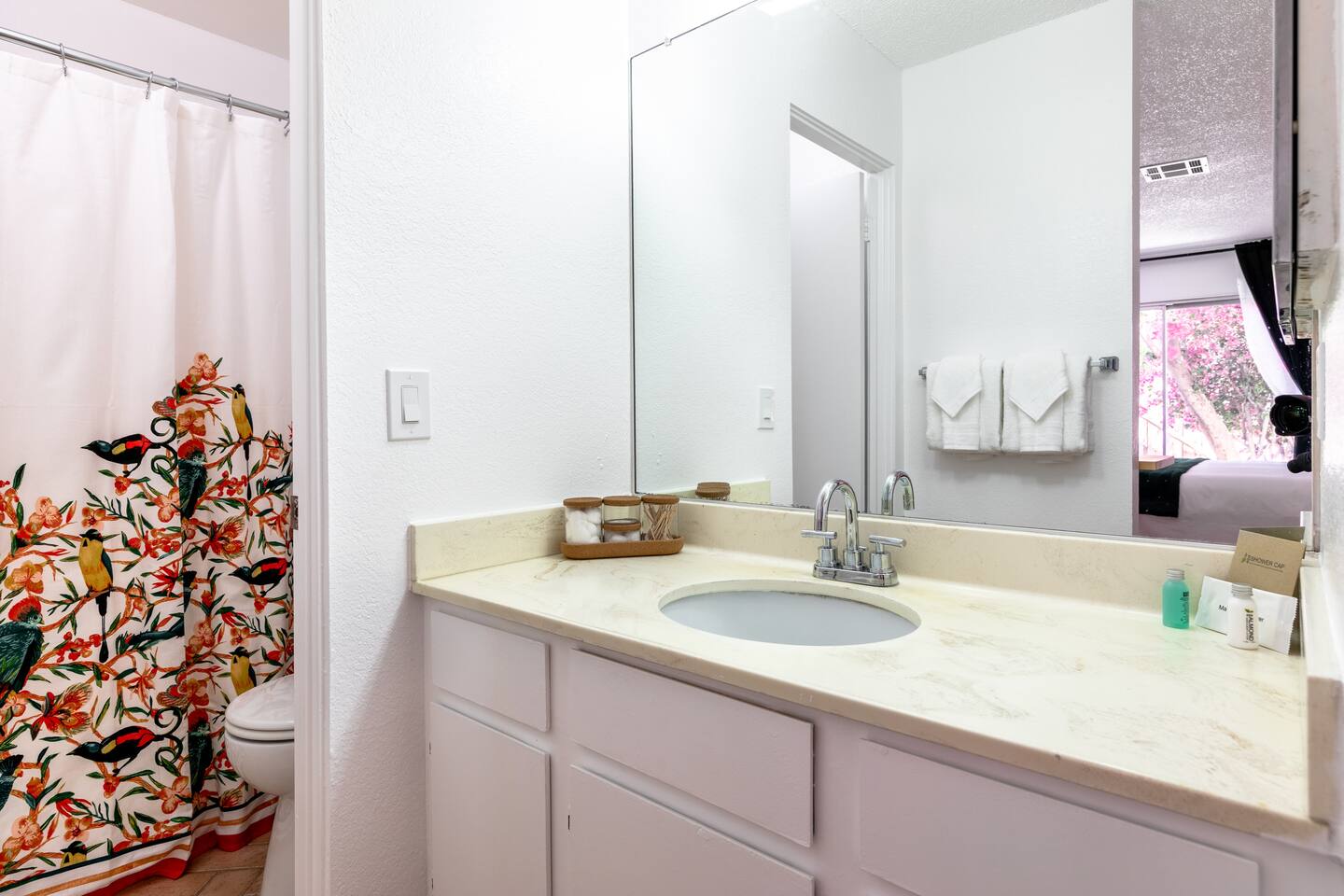 The unit is secured with Ring Home Security System. We only activate the alarm when the unit is vacant. You will see sensors on all windows and doors. We do have a Ring Doorbell camera and two security cameras outside in the front yard that are motion activated and only record if something triggers the motion sensor. Street Parking Only. Please do not keep valuables in your car. Management is NOT responsible for damage or theft of vehicles or its contents. Per City ordinance we must keep volume levels low and have a noise monitoring device in the home. This device reads the noise level in decibel format. To be clear the noise monitoring does NOT record any conversations. Due to strict city ordinance, we strictly enforce the NO parties or gathering policy. The ordinance also states that: "No outdoor music, radios, musical instruments or other devices that produce or reproduce sound shall be allowed to be used outdoors at any time." Please be considerate of our neighbors. This is indeed the desert. Dust and critters are part of the package. The place will be professionally cleaned prior to your arrival and we have routine pest control. We don’t have too many critter invaders, but as it gets warmer, we start seeing more activity. No one is ever comfortable with bugs, but water bugs, crickets, gnats, and other insects are part of this habitat. Be mindful of your surroundings when walking outside, especially in the warmer months.