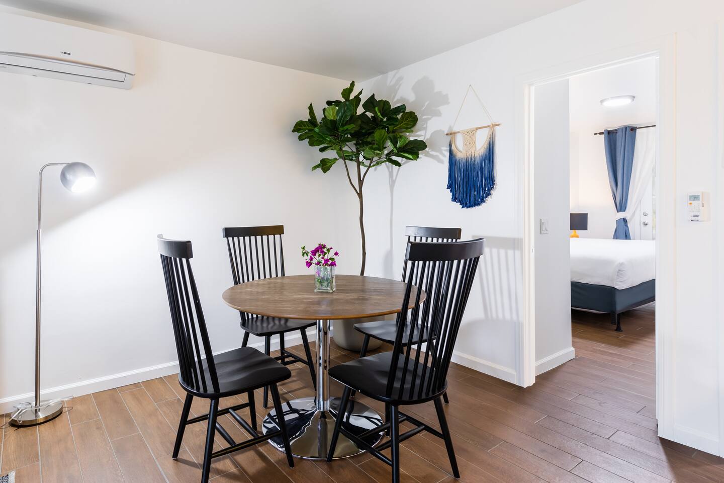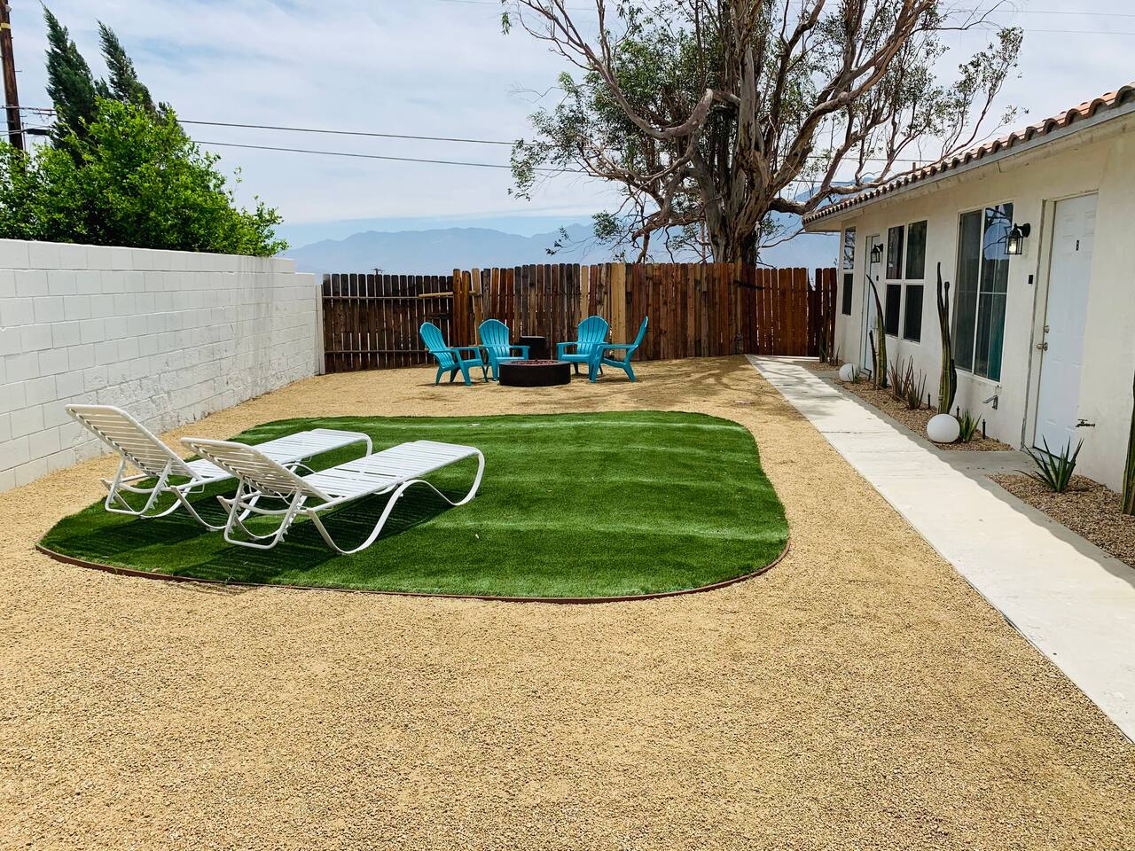 Our Unit features: * Gated Entrance * Landscaped yard with Firepit *Ring Security Camera Surveillance *Centrally located, 2-mile radius of restaurants, gas station, banks, laundromat. * Kitchenette ( No full stove) but we do have a hotplate and microwave. Our location can be a perfect fit for those in town for work Desert Hot Springs is a small no frills kind of town, but in recent years it has been undergoing lot's of improvements and beautification projects. Not to mention it is world renowned for its wonderful spas and mineral water. The neighborhood has a mixed crowd. If you want a beautiful, clean place to call home while on a job assignment and feel comfortable being around people from all walks of life then this is your place. --Pet Policy-- We allow up to 1 dog in unit. Upon departure, clean up dog hair to the best of your ability. The cost of additional cleaning or laundering services due to excessive dog hair will be billed to the guest. Promptly bag and dispose of all dog waste from the yard during your stay and at time of departure. We request all dogs be up to date on vaccinations as required by state law. Dogs are not allowed on furniture or beds. Bring your dog’s favorite blanket or bed. Bring a pet crate and use whenever you must leave your dog unattended for a period of time. Never leave your dog unattended if it barks or chews when left alone. ***PLEASE GO OVER LISTING DESCRIPTION AND OTHER THINGS TO NOTE SECTION PRIOR TO BOOKING.***