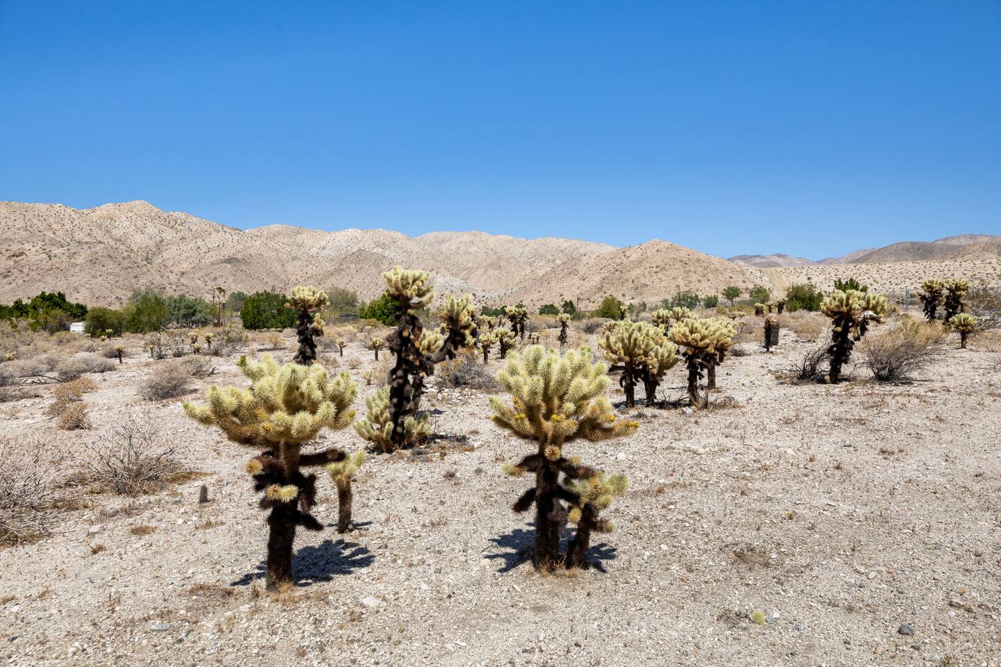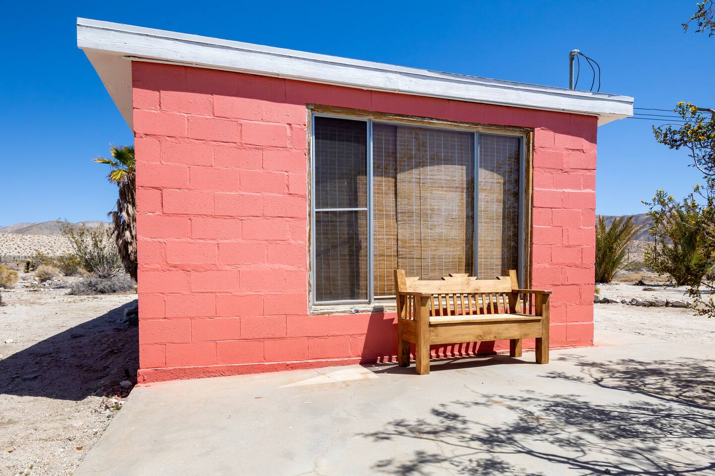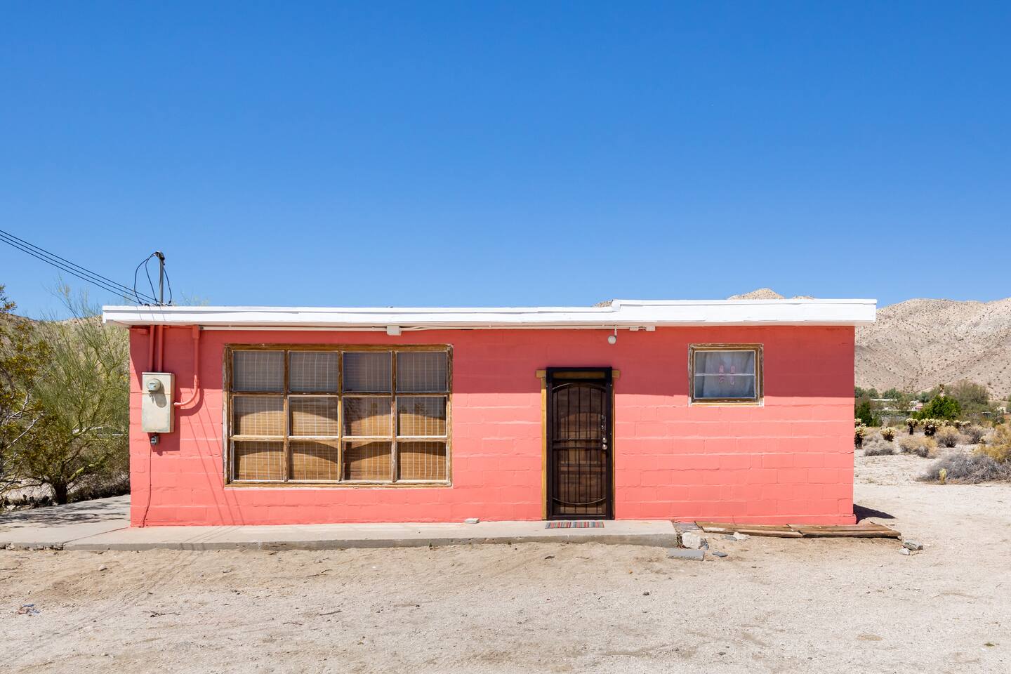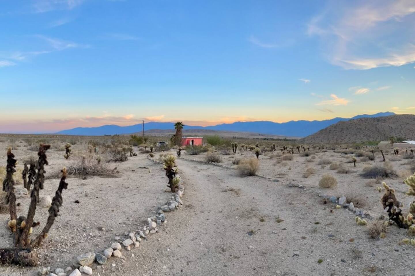 The cabin is located at the beautiful Sky Valley area outside of Desert Hot Springs. It's a rural desert area, no streetlights, so we advise you to come early to be able to spot the pink cabin. There is one small gas station 1/2 mile down the road. All grocery stores and located in town so that is a 6-7 mile drive.