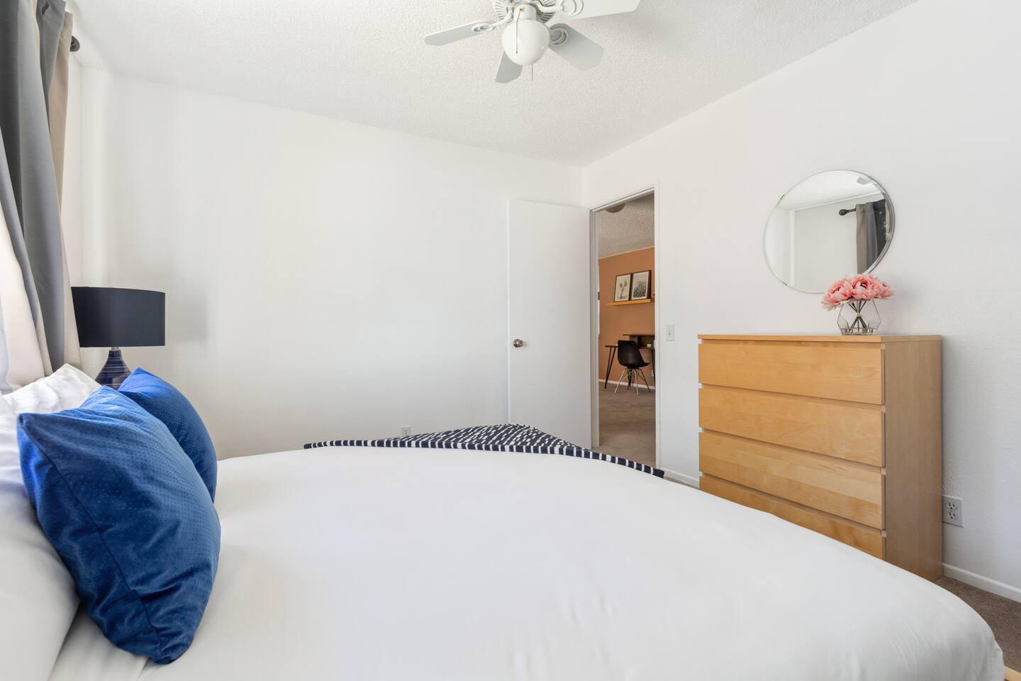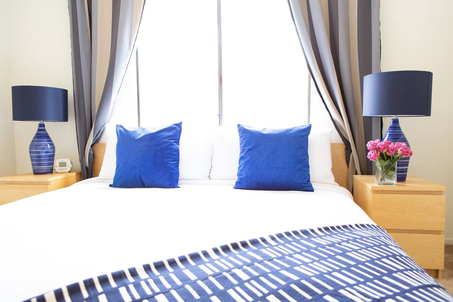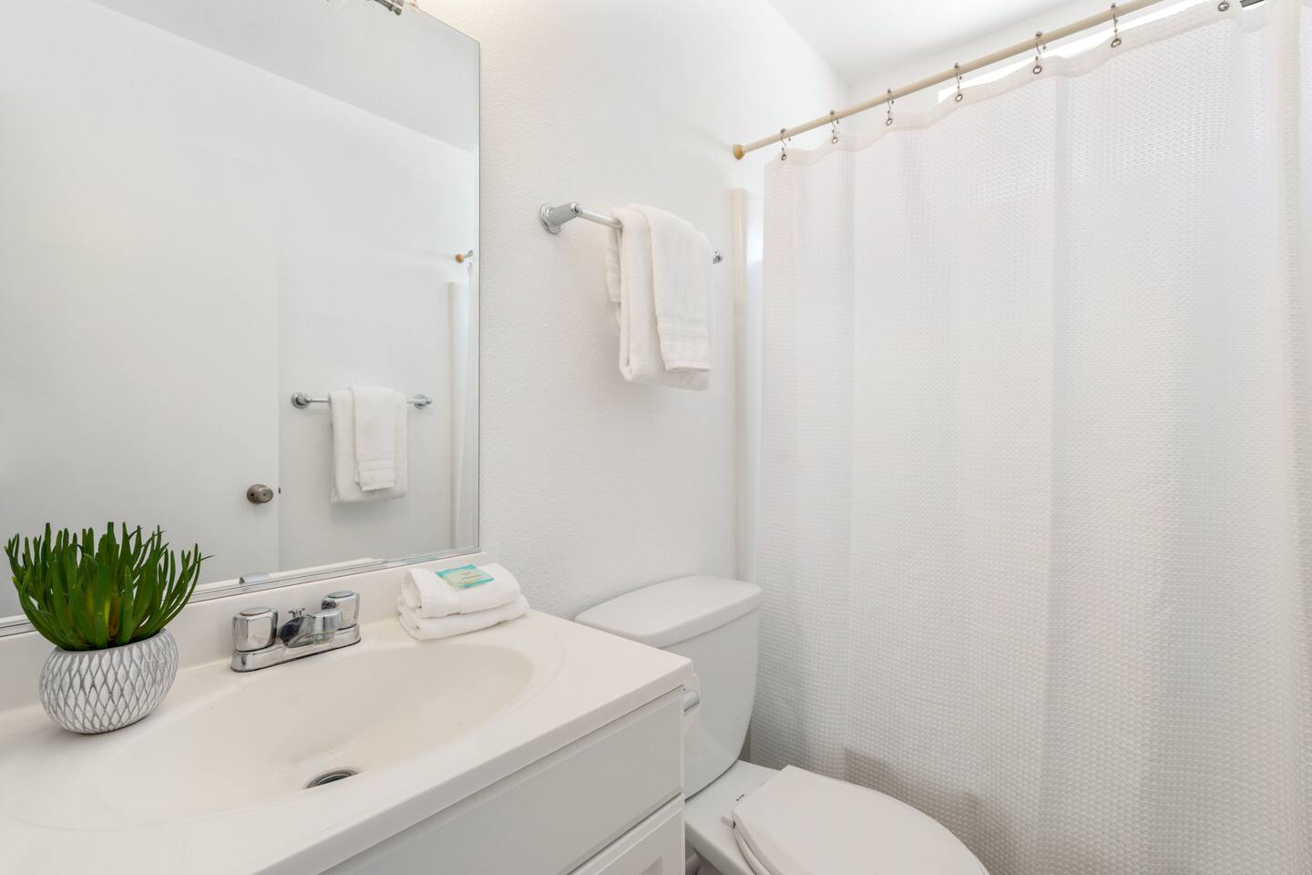 We provide hotel level amenities. Our space is professionally cleaned by hotel-trained housekeepers and features 100% cotton hotel quality linens, freshly laundered for a good night’s sleep! This is a 2 bedroom/ 2 bathroom apartment. Master bedroom has a king-sized bed and attached bathroom. Second bedroom also has a king-sized bed. One roll away twin bed will be found in closet. --Amenities-- -Workspace with desk, lamp, and USB power. -A fully furnished kitchen is at your disposal with l full size appliances. It is well stocked with dishes, cookware, and basic cooking essentials such as oil, salt, pepper, spice rack, and coffee. -Bathroom includes hotel-quality towels, hair dryer, shampoo, soap. -Ironing board + Iron -Hotel quality 100% cotton linens -Free Parking for ONE vehicle in the driveway ***PLEASE MAKE SURE YOU GO OVER FULL LISTING DESCRIPTION AND OTHER THINGS TO NOTE SECTION PRIOR TO BOOKING.***