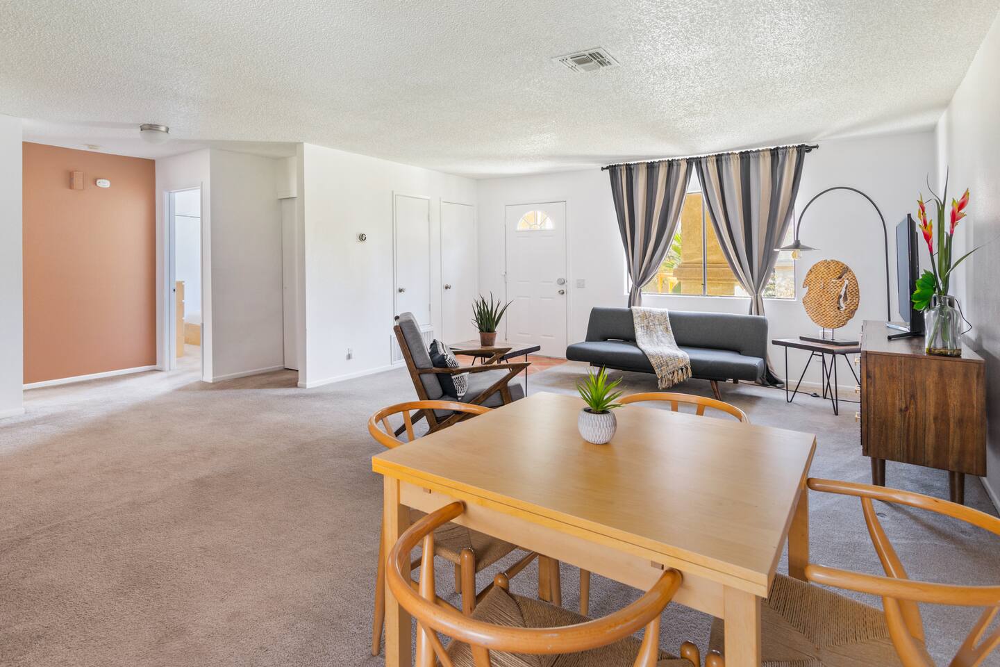 One vehicle per unit Per City ordinance we must keep volume levels low and have a noise monitoring device in the home. This device reads the noise level in decibel format. To be clear the noise monitoring does NOT record any conversations. Due to strict city ordinance, we strictly enforce the NO parties or gathering policy. The ordinance also states that: "No outdoor music, radios, musical instruments or other devices that produce or reproduce sound shall be allowed to be used outdoors at any time." Please be considerate of our neighbors. This is indeed the desert. Dust and critters are part of the package. The place will be professionally cleaned prior to your arrival and be have routine pest control. We don’t have too many critter invaders but as it gets warmer we start seeing more activity. No one is ever comfortable with bugs, but water bugs, crickets, gnats, and other insects are part of this habitat. Be mindful of your surroundings when walking outside, specially in the warmer months.