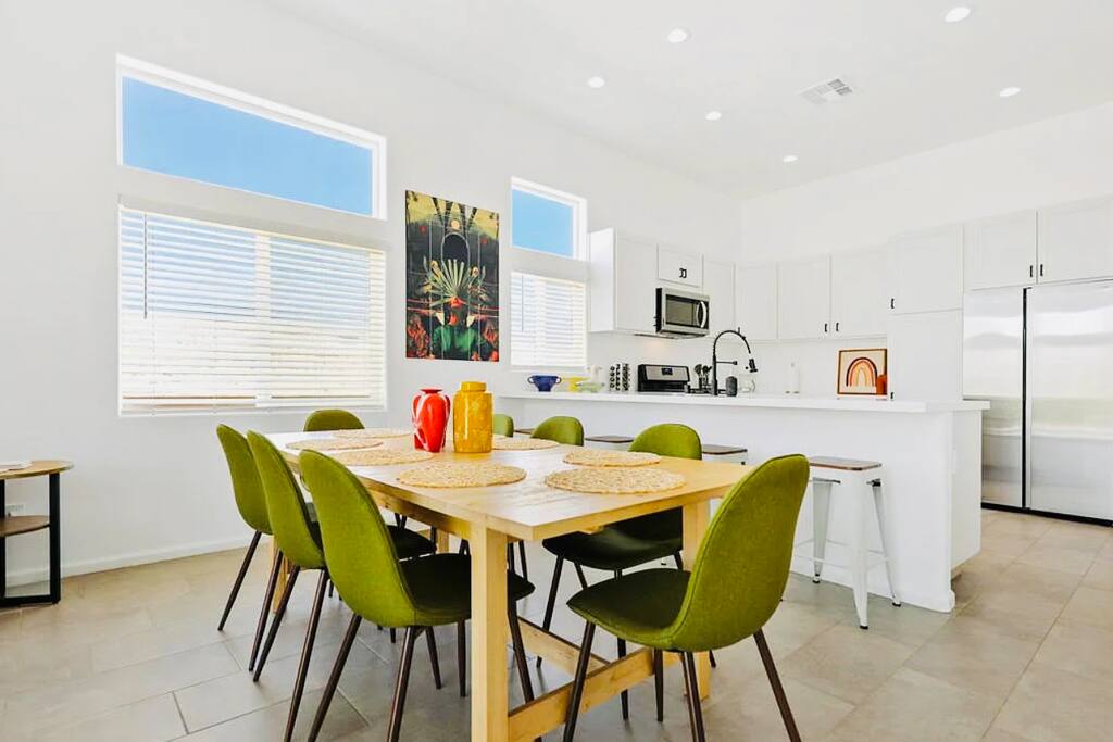 The home is 4 bedrooms, 3 full baths, open concept kitchen & living room. Fully gated. Garage access. Dog friendly! We are located 20 min to downtown Palm Springs, 50 minutes to Joshua Tree National Park, 35 minutes to Coachella Music Festival, 29 min to Indian Wells Tennis Tournament, and 30 minutes to Acrisure Arena. We have a pool, spa, fire-pit, board games, record player, and a tennis table and dart board in the garage.