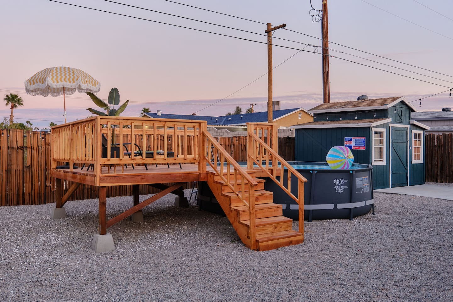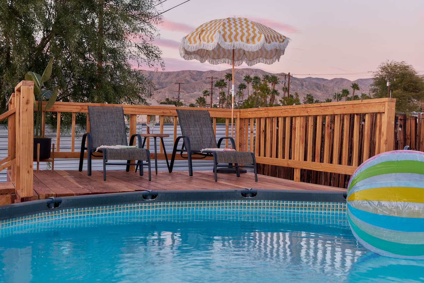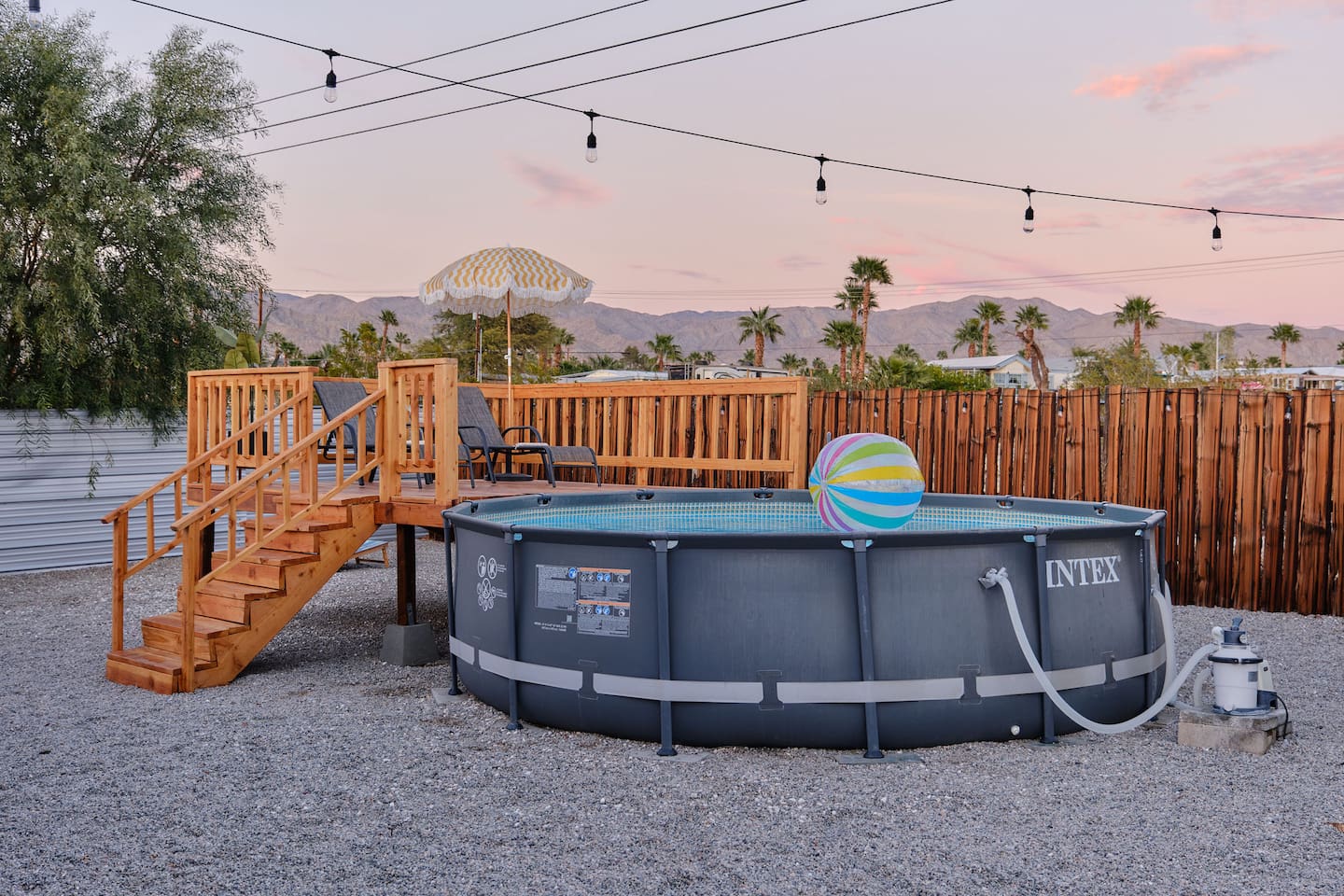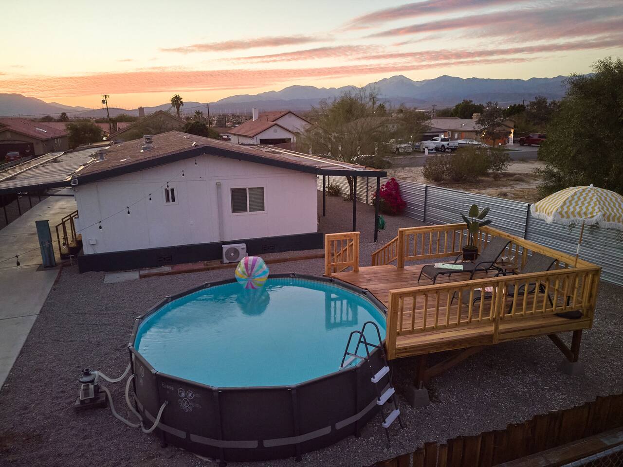 County of Riverside STR Permit RVC-1637 Nestled in the middle of a residential neighborhood of Desert Hot Springs w/ spacious open floor plan & fully fenced w/covered carport. To help beat the heat in the summers we have an Intex above ground pool our guests can use. Our two bedroom home sleeps 5 people comfortably. Due to high demand on special event weekends we do allow up to 7 guests with extra fee. We strongly recommend that you bring your airmattress. pillows, and blankets.