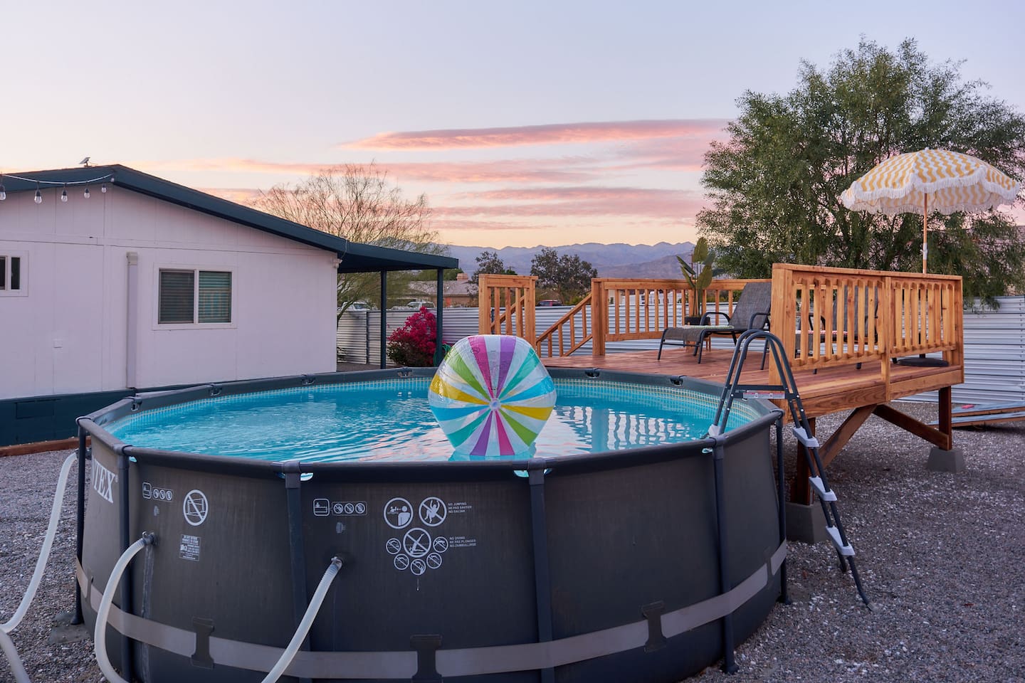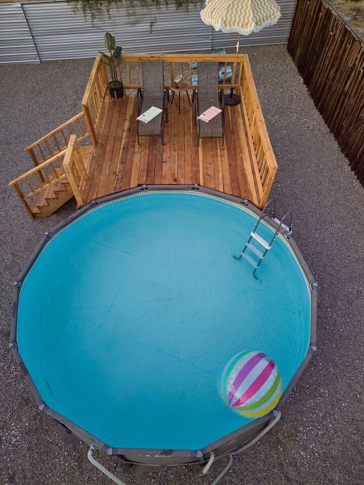 No cable tv. We have one tv in each bedroom that you can use to stream content using your own accounts. To help beat the heat in the summers we have an Intex above ground pool our guests can use. Available weather permitting. NOTE: This is indeed the desert. Dust and critters are part of the package. The place will be professionally cleaned prior to your arrival and we have routine pest control. We don’t have too many critter invaders but as it gets warmer we start seeing more activity. No one is ever comfortable with bugs, but water bugs, crickets, gnats, and other insects are part of this habitat. Be mindful of your surroundings when walking outside, specially in the warmer months Per City ordinance we must keep volume levels low and have a noise monitoring device in the home. This device reads the noise level in decibel format. To be clear the noise monitoring does NOT record any conversations. Due to strict city ordinance, we strictly enforce the NO parties or gathering policy. The ordinance also states that: "No outdoor music, radios, musical instruments or other devices that produce or reproduce sound shall be allowed to be used outdoors at any time." Please be considerate of our neighbors.