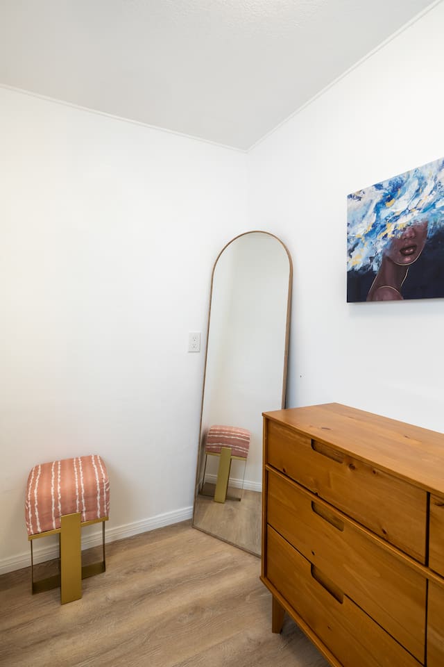 Our house has gone over a full renovation. Master bedroom has one king bed and private bathroom with shower. The second bedroom has one queen bed with private bathroom and shower/tub. Each bedroom has their own television. In the Main part of the house, we have a dining table sits 6, work area, a sitting area with a futon sofa that can sleep one, we have a lounger/daybed with twin mattress that sleeps one, and we have a rollaway bed in the closet that sleeps one. Full kitchen with all brand new stainless-steel appliances. There is also washer/dryer inside the unit. --Pet Policy-- We allow up to 2 dogs in unit. Upon departure, clean up dog hair to the best of your ability. The cost of additional cleaning or laundering services due to excessive dog hair will be billed to the guest. Promptly bag and dispose of all dog waste from the yard during your stay and at time of departure. Bring a pet crate and use whenever you must leave your dog unattended for a period of time. Never leave your dog unattended if it barks or chews when left alone.
