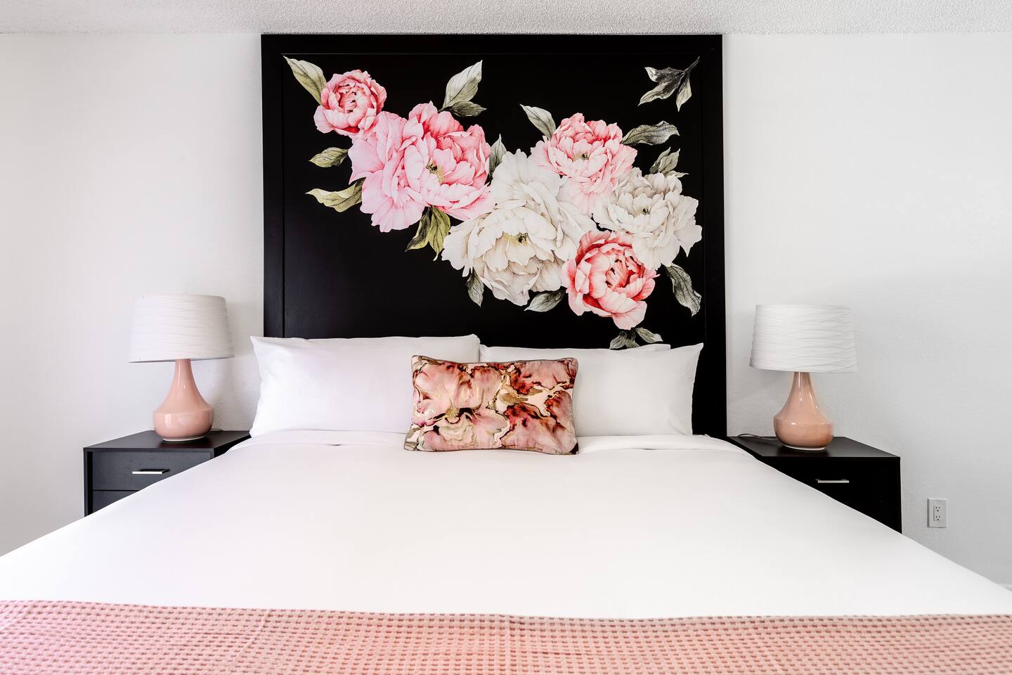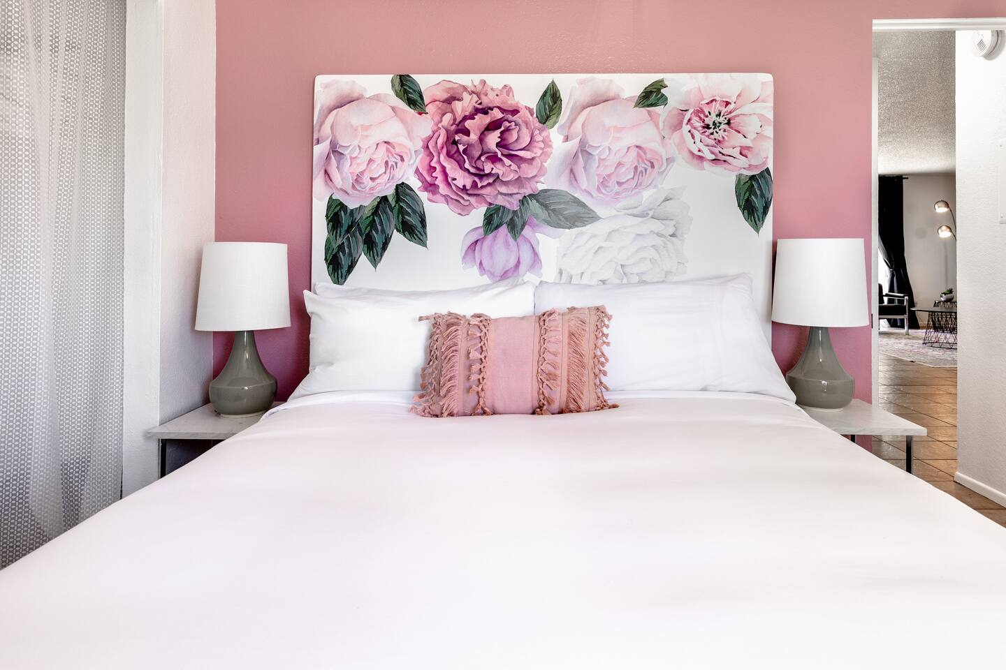 City of Desert Hot Springs Vacation Rental Permit Number VR20-0068 Cute and trendy spacious 2 bed, 2 bath apartment. Yes, it's pink and you'll love it. Did we mention we are dog friendly! Our two bedroom apartments sleeps 4 people comfortably, but due to high demand on festival weekends we are allowing up to 6 registered guests with additional fee. We encourage you to bring air mattress and extra blankets and pillows as needed.
