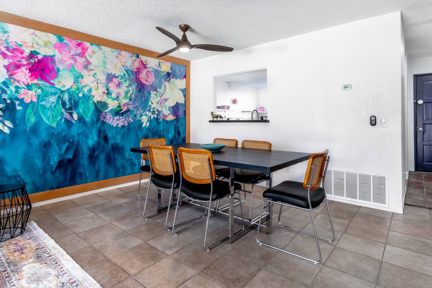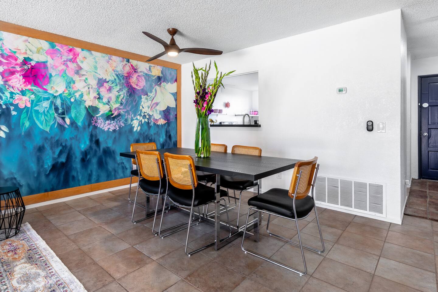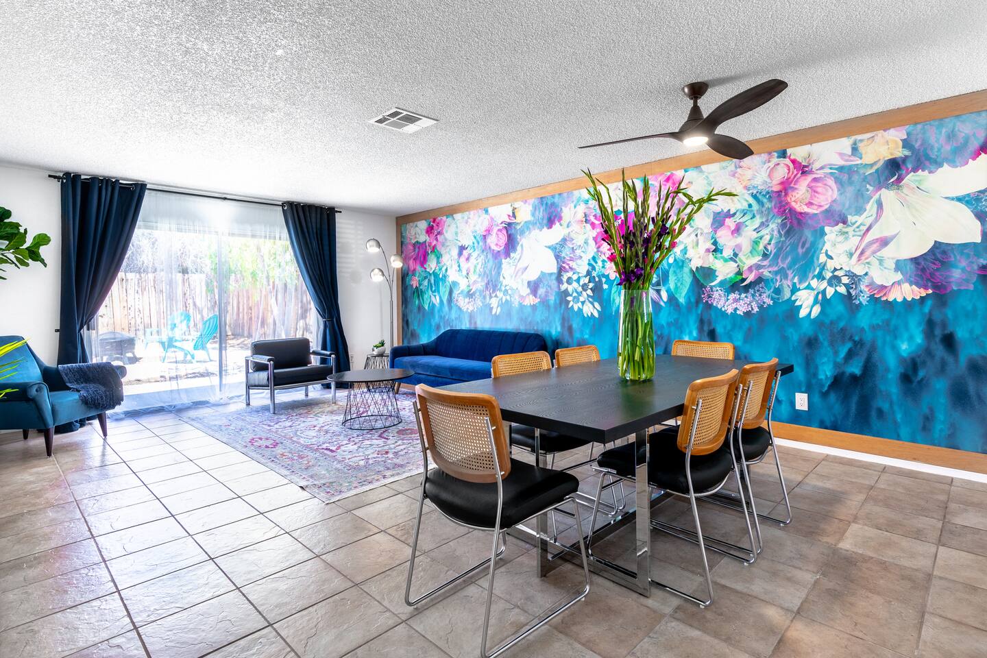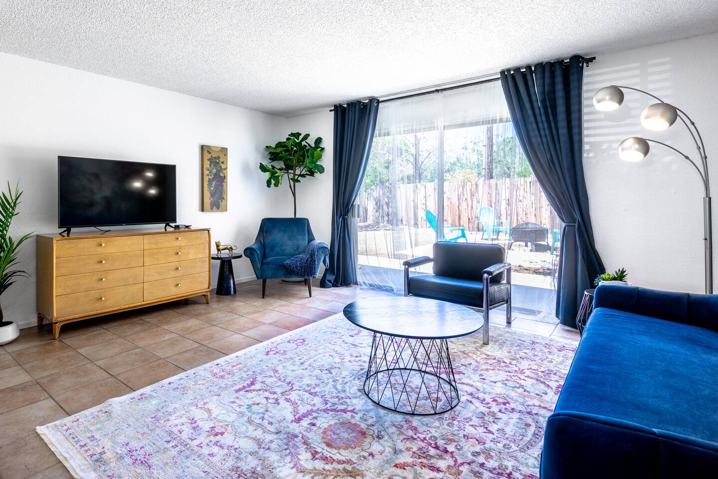 The unit is secured with Ring Home Security System. We only activate the alarm when the unit is vacant. You will see sensors on all windows and doors. We do have a Ring Doorbell camera and two security cameras outside in the front yard that are motion activated and only record if something triggers the motion sensor. Street Parking Only. Please do not keep valuables in your car. Management is NOT responsible for damage or theft of vehicles or its contents. Per City ordinance we must keep volume levels low and have a noise monitoring device in the home. This device reads the noise level in decibel format. To be clear the noise monitoring does NOT record any conversations. Due to strict city ordinance, we strictly enforce the NO parties or gathering policy. The ordinance also states that: "No outdoor music, radios, musical instruments or other devices that produce or reproduce sound shall be allowed to be used outdoors at any time." Please be considerate of our neighbors. This is indeed the desert. Dust and critters are part of the package. The place will be professionally cleaned prior to your arrival and be have routine pest control. We don’t have too many critter invaders, but as it gets warmer, we start seeing more activity. No one is ever comfortable with bugs, but water bugs, crickets, gnats, and other insects are part of this habitat. Be mindful of your surroundings when walking outside, especially in the warmer months.
