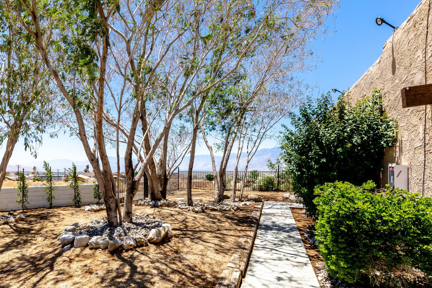 Our apartment sits on a private cul-de-sac offering views of San Jacinto Mountains. The private back yard allows you to enjoy the clear skies and desert weather. Our place is well-appointed with amenities such as a Smart TV in living room, WIFI, and fully equipped kitchen with full size appliances and everything you need to make a home-cooked meal! Nest thermostat keeps you cool all day. The property sits on a cul-de-sac with no immediate neighbors on the road. Offers privacy yet still close enough to town. Plenty of street parking available along the curb. --Pet Policy-- We allow up to 2 dogs per unit. Upon departure, clean up dog hair to the best of your ability. The cost of additional cleaning or laundering services due to excessive dog hair will be billed to the guest. Vacuum is provided in unit. Promptly bag and dispose of all dog waste from the yard during your stay and at time of departure. We request all dogs be up to date on vaccinations as required by state law. Dogs are not allowed on furniture or beds. Bring your dog’s favorite blanket or bed. Bring a pet crate and use whenever you must leave your dog unattended for a period of time. Never leave your dog unattended if it barks or chews when left alone. Do not allow your dog to disrupt the peace and serenity of the community. Dogs with any history of having bitten anyone or another animal are not allowed. ***PLEASE GO OVER FULL LISTING DESCRIPTION AND OTHER THINGS TO NOTE SECTION PRIOR TO BOOKING. ***