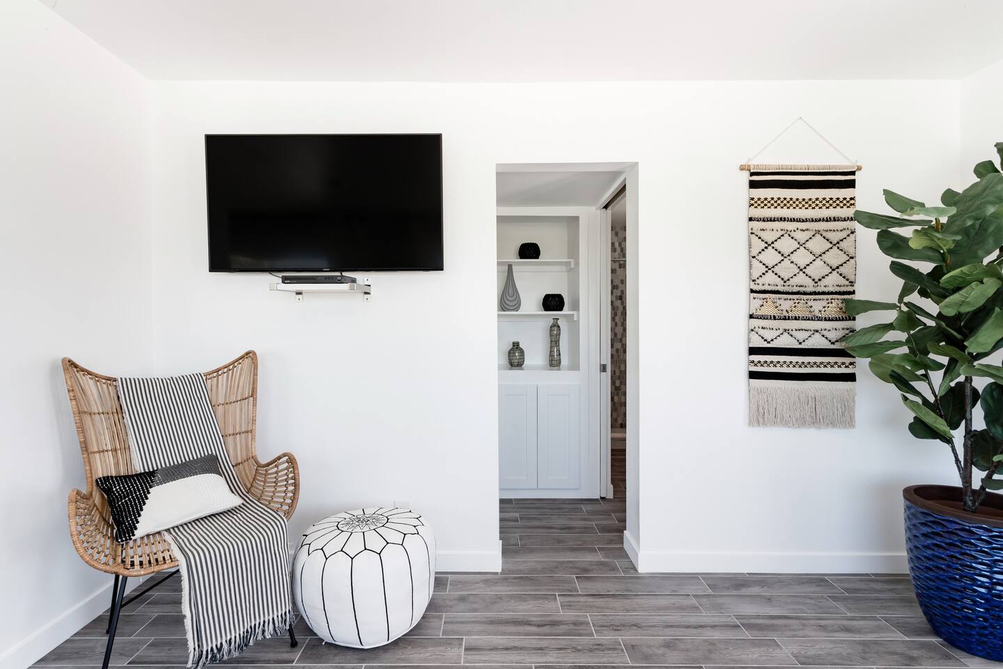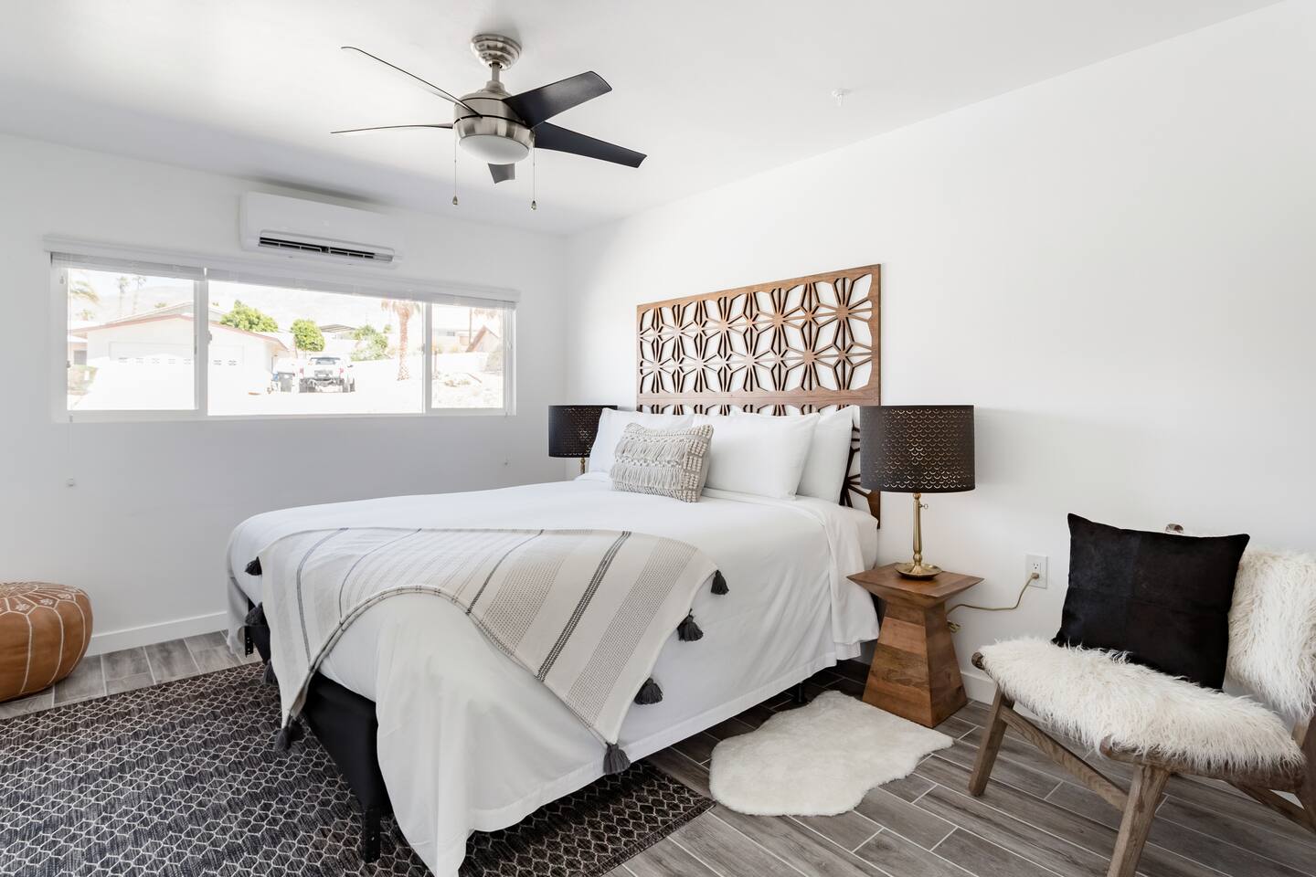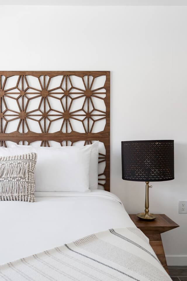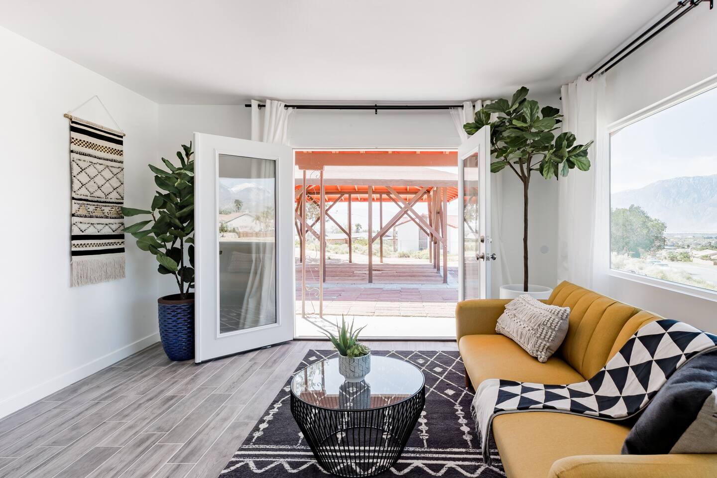 City of Desert Hot Springs Vacation Rental Permit Number VR20-0028 Recline on a mid-century sofa amid trendy steel wire coffee tables, potted faux fiddle-leaf plants, and ample sunlight via panoramic windows. Unit is a one bedroom with a King size bed. ONE bedrm apartment is set up for 2 guests but due to high demand we allow up to 3 guets with fee. We do have a small futon but for more comfort you can bring airmattress & extra bedding.