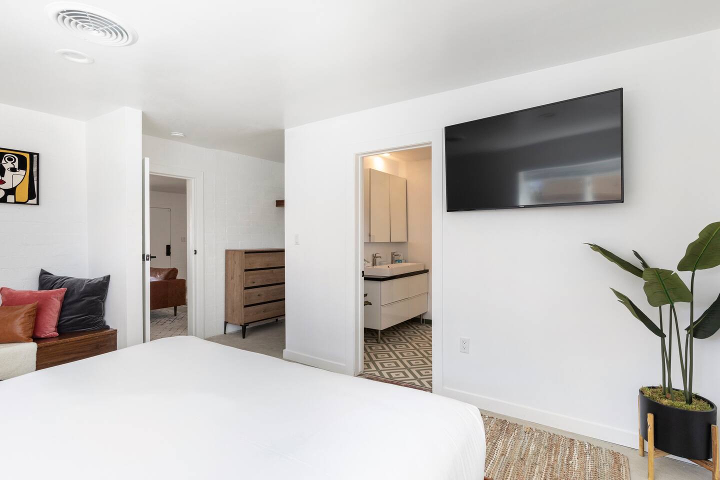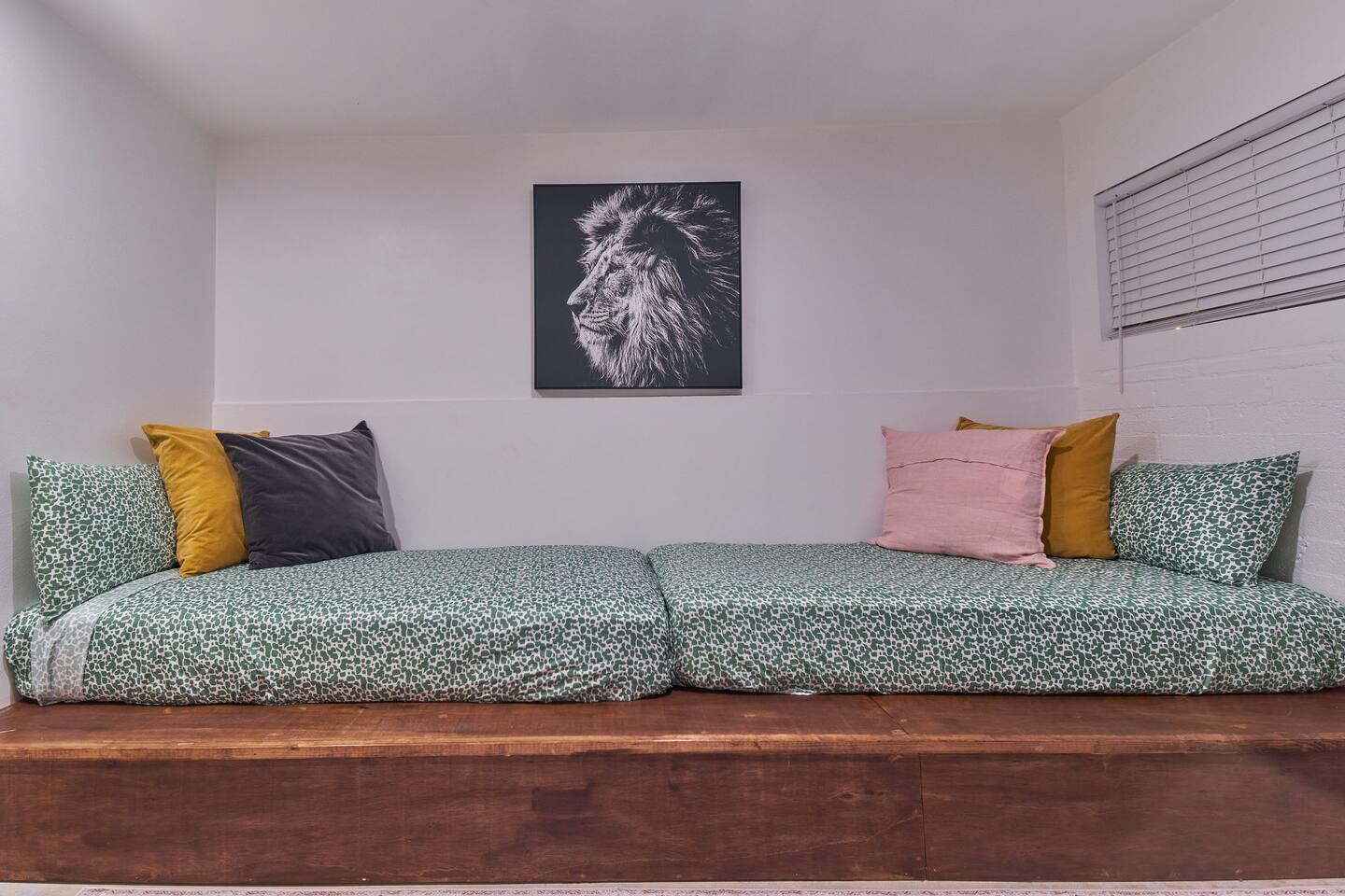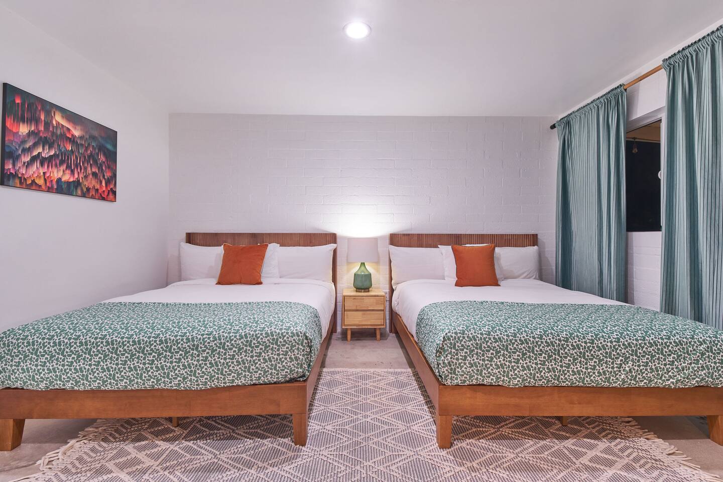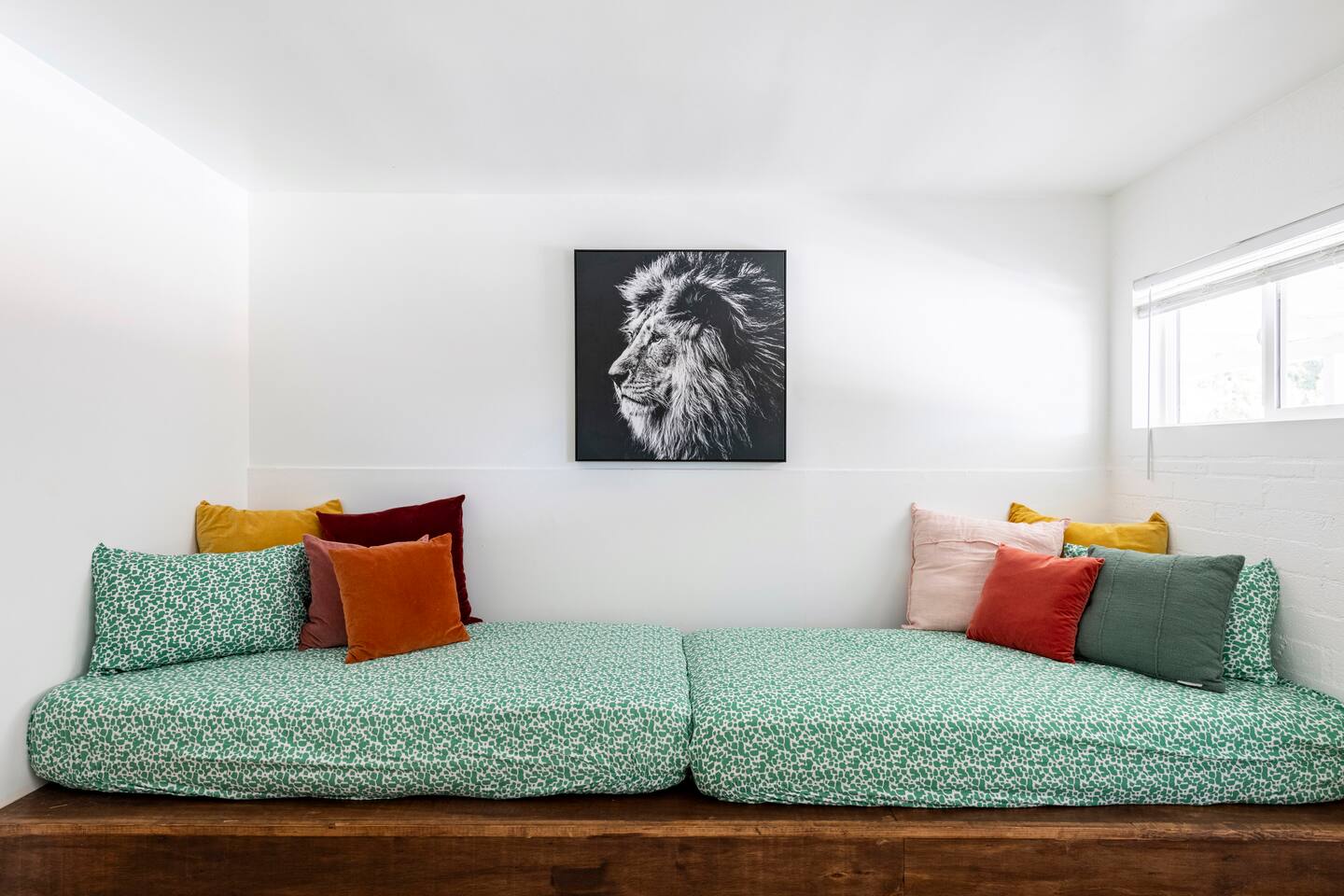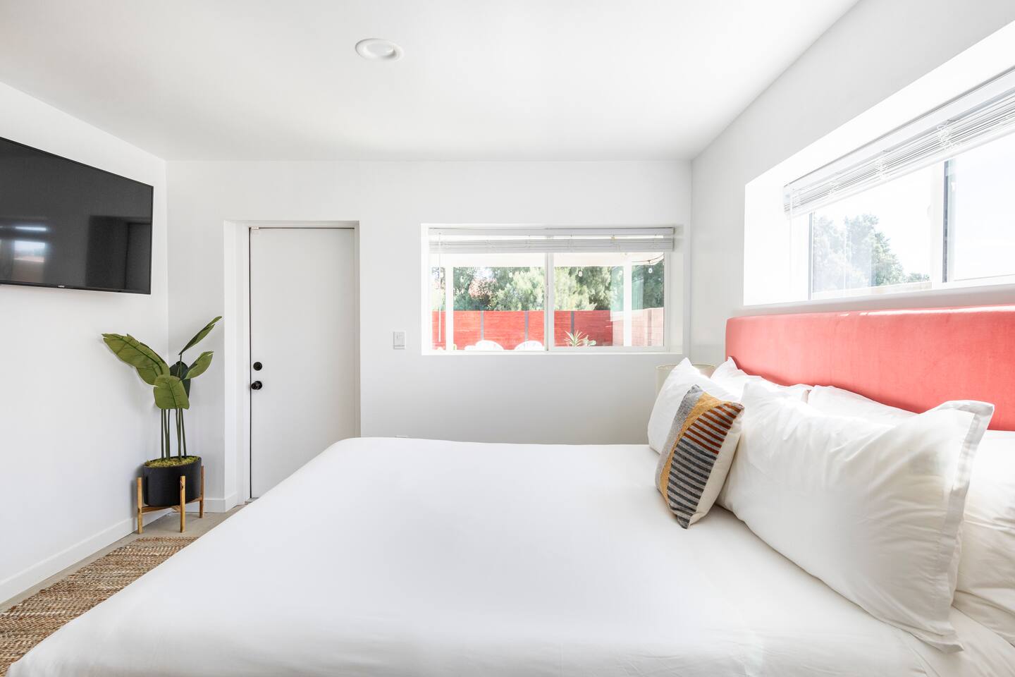 Bring the whole family to this great place with lots of room for fun. Backyard has swimming pool, BBQ, and ping pong table & bocce ball court. Original brick walls, cement floors & tasteful designer interiors work amazing well with its impressive glass tile kitchen and baths. 1 king, 2 queens, 3 twin mattress, 1 futon sofa, sleeps 10 comfortably.