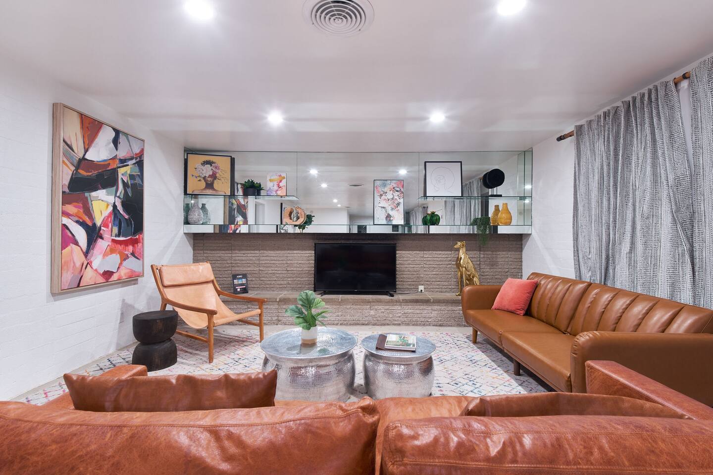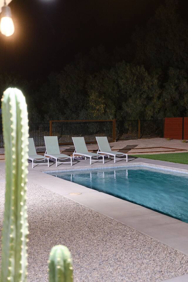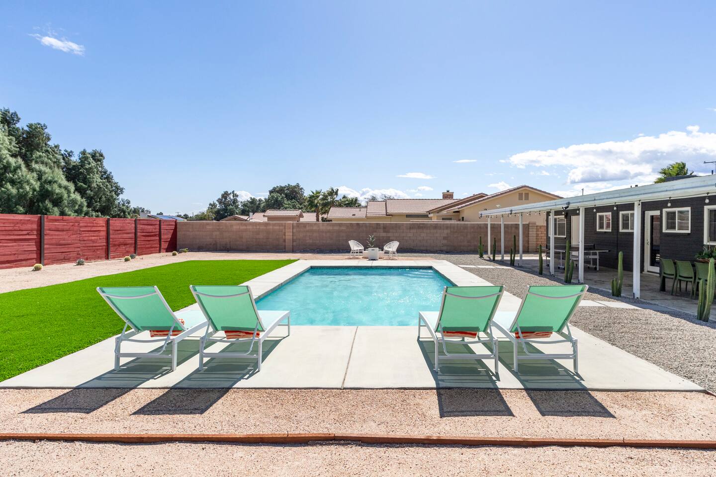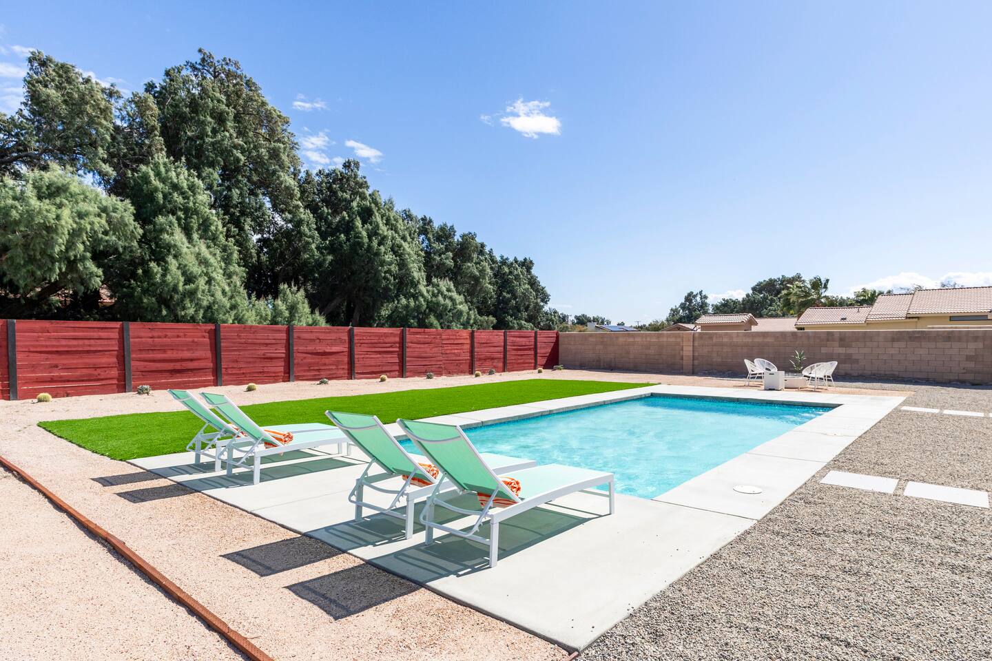 Fully landscaped backyard with swimming pool, bbq, and ping pong table perfect to enjoy those warm desert nights. Pool is NOT heated. Please note that although the home has a fireplace, we have NOT listed it as an amenity as it is not functional. There is one television in each bedroom with apps already installed for streaming. No Cable Per City ordinance we must keep volume levels low and have a noise monitoring device in the home. We are working on implementation. This device will read the noise volume in decibel format. To be clear the noise monitoring does NOT record any conversations. Due to strict city ordinance, we strictly enforce the NO parties or gathering policy. The ordinance also states that: "No outdoor music, radios, musical instruments or other devices that produce or reproduce sound shall be allowed to be used outdoors at any time." Please be considerate of our neighbors.